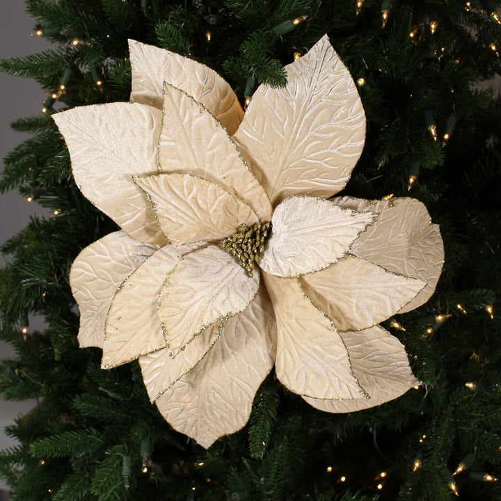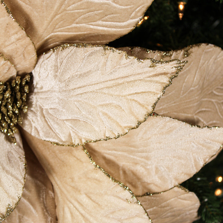 Chic et lumineuse, cette tige de poinsettia champagne de 27,5" avec fleur de 24" diffuse un éclat raffiné et chaleureux. Ses pétales délicats ajoutent douceur et élégance à vos fêtes. Idéale pour un grand sapin, une guirlande ou une composition florale, elle complète un décor sophistiqué. Elle se marie avec des tons crème, dorés ou cuivrés.